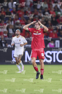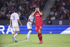 Carson, California, Estados Unidos, 1 de octubre de 2025. Franco Romero en lamento, durante el partido correspondiente al Campeones Cup 2025, entre el LA Galaxy y los Diablos Rojos del Toluca, realizado en el Dignity Health Sports Park. Foto: Imago7/ Rafael Vadillo
