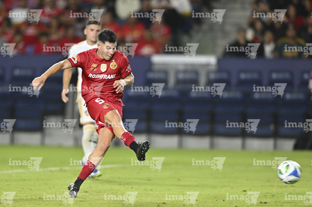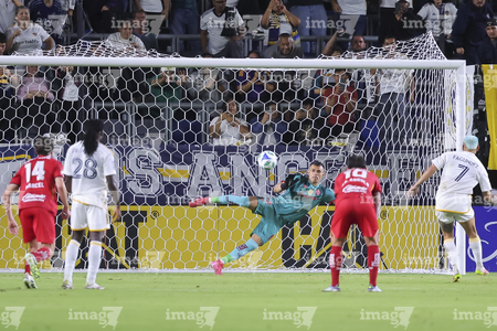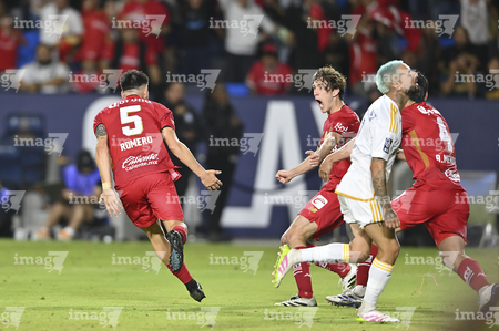 Carson, California, Estados Unidos, 1 de octubre de 2025. Franco Romero anota gol, durante el partido correspondiente al Campeones Cup 2025, entre el LA Galaxy y los Diablos Rojos del Toluca, realizado en el Dignity Health Sports Park. Foto: Imago7/ Etzel Espinosa