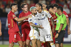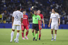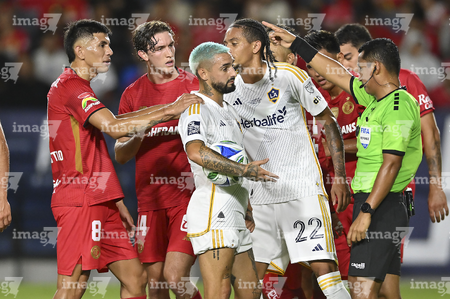 Carson, California, Estados Unidos, 1 de octubre de 2025. Paulinho en reclamo, durante el partido correspondiente al Campeones Cup 2025, entre el LA Galaxy y los Diablos Rojos del Toluca, realizado en el Dignity Health Sports Park. Foto: Imago7/ Rafael Vadillo