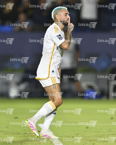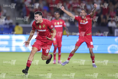 Carson, California, Estados Unidos, 1 de octubre de 2025. Franco Romero en festejo de gol, durante el partido correspondiente al Campeones Cup 2025, entre el LA Galaxy y los Diablos Rojos del Toluca, realizado en el Dignity Health Sports Park. Foto: Imago7/ Etzel Espinosa