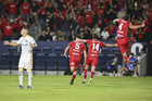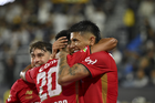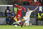 Carson, California, Estados Unidos, 1 de octubre de 2025. Nicolás Castro anota gol, durante el partido correspondiente al Campeones Cup 2025, entre el LA Galaxy y los Diablos Rojos del Toluca, realizado en el Dignity Health Sports Park. Foto: Imago7/ Rafael Vadillo