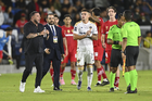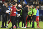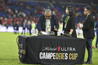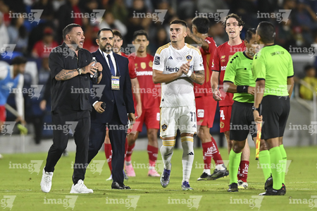 Carson, California, Estados Unidos, 1 de octubre de 2025. Antonio Mohamed "Turco" en reclamo a Iván Bartón durante el partido correspondiente al Campeones Cup 2025, entre el LA Galaxy y los Diablos Rojos del Toluca, realizado en el Dignity Health Sports Park. Foto: Imago7/ Etzel Espinosa