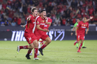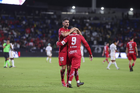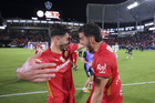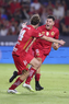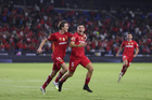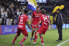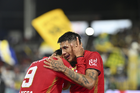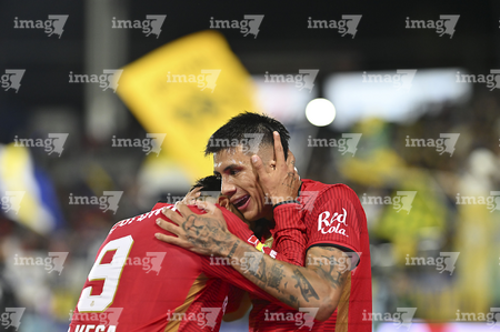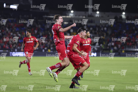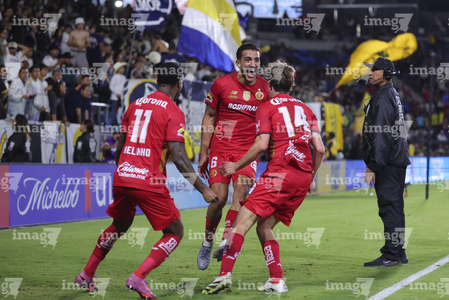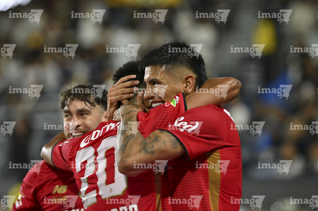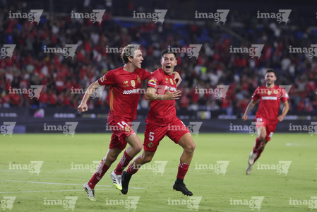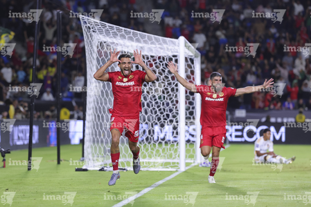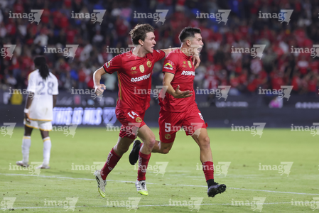 Carson, California, Estados Unidos, 1 de octubre de 2025. Nicolás Castro y Federico Pereira en festejo de gol, durante el partido correspondiente al Campeones Cup 2025, entre el LA Galaxy y los Diablos Rojos del Toluca, realizado en el Dignity Health Sports Park. Foto: Imago7/ Rafael Vadillo