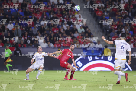 Carson, California, Estados Unidos, 1 de octubre de 2025. Paulinho, Marcel Ruiz y Franco Romero, durante el partido correspondiente al Campeones Cup 2025, entre el LA Galaxy y los Diablos Rojos del Toluca, realizado en el Dignity Health Sports Park. Foto: Imago7/ Etzel Espinosa