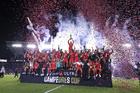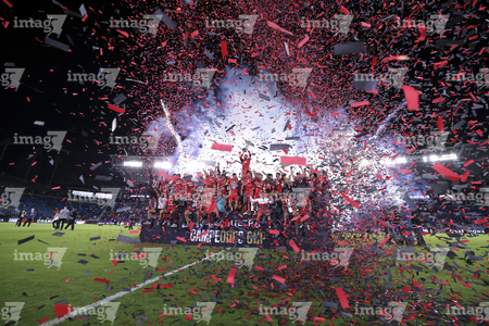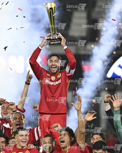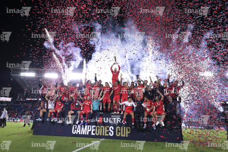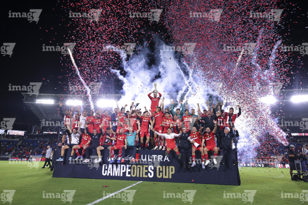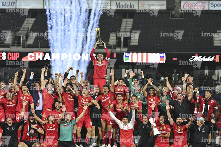 Carson, California, Estados Unidos, 1 de octubre de 2025. Jugadores del Toluca en festejo con el trofeo de campeón, durante el partido correspondiente al Campeones Cup 2025, entre el LA Galaxy y los Diablos Rojos del Toluca, realizado en el Dignity Health Sports Park. Foto: Imago7/ Etzel Espinosa