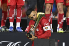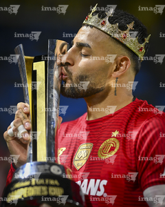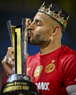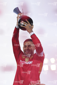 Carson, California, Estados Unidos, 1 de octubre de 2025. Alexis Vega en festejo con el trofeo de campeón, durante el partido correspondiente al Campeones Cup 2025, entre el LA Galaxy y los Diablos Rojos del Toluca, realizado en el Dignity Health Sports Park. Foto: Imago7/ Rafael Vadillo