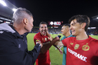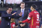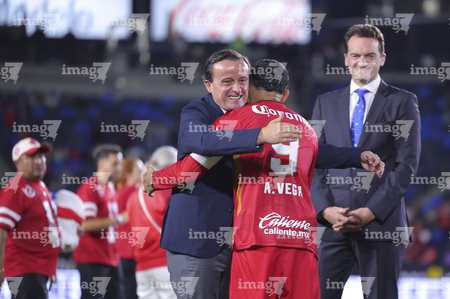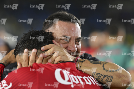 Carson, California, Estados Unidos, 1 de octubre de 2025. Antonio Mohamed y Alexis Vega en festejo, durante el partido correspondiente al Campeones Cup 2025, entre el LA Galaxy y los Diablos Rojos del Toluca, realizado en el Dignity Health Sports Park. Foto: Imago7/ Etzel Espinosa