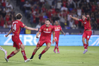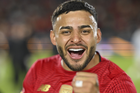 Carson, California, Estados Unidos, 1 de octubre de 2025. Nicolás Castro en festejo de gol, durante el partido correspondiente al Campeones Cup 2025, entre el LA Galaxy y los Diablos Rojos del Toluca, realizado en el Dignity Health Sports Park. Foto: Imago7/ Etzel Espinosa