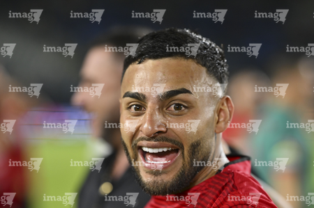Carson, California, Estados Unidos, 1 de octubre de 2025. Franco Romero en festejo de gol, durante el partido correspondiente al Campeones Cup 2025, entre el LA Galaxy y los Diablos Rojos del Toluca, realizado en el Dignity Health Sports Park. Foto: Imago7/ Rafael Vadillo