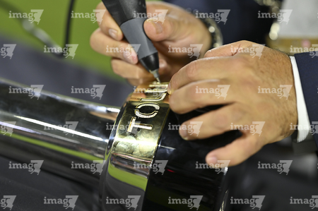 Carson, California, Estados Unidos, 1 de octubre de 2025. Grabado del trofeo, durante el partido correspondiente al Campeones Cup 2025, entre el LA Galaxy y los Diablos Rojos del Toluca, realizado en el Dignity Health Sports Park. Foto: Imago7/ Etzel Espinosa