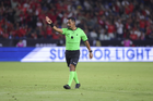 Carson, California, Estados Unidos, 1 de octubre de 2025. Iván Bartón, árbitro central, durante el partido correspondiente al Campeones Cup 2025, entre el LA Galaxy y los Diablos Rojos del Toluca, realizado en el Dignity Health Sports Park. Foto: Imago7/ Rafael Vadillo