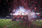 Carson, California, Estados Unidos, 1 de octubre de 2025. Jugadores del Toluca en festejo con el trofeo de campeón, durante el partido correspondiente al Campeones Cup 2025, entre el LA Galaxy y los Diablos Rojos del Toluca, realizado en el Dignity Health Sports Park. Foto: Imago7/ Rafael Vadillo