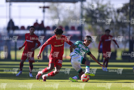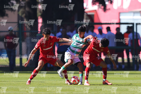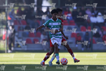 Metepec, Estado de México, 15 de noviembre de 2025. , durante el partido correspondiente a la vuelta de los Cuartos de Final del torneo Apertura 2025 de la Liga BBVA MX categoría Sub17, entre los Diablos Rojos del Toluca y los Guerreros de Santos Laguna, realizado en las instalaciones de Metepec. Foto: Imago7/