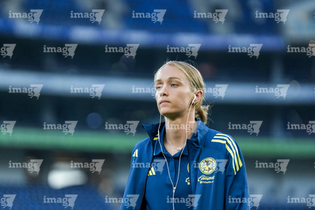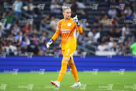 Guadalupe, Nuevo León, 6 de noviembre de 2025. Jordan Brewster, durante el partido correspondiente a la ida de los Cuartos de Final del torneo Apertura 2025 de la Liga BBVA MX Femenil, entre las Rayadas del Monterrey y las Águilas del América, realizado en el estadio BBVA. Foto: Imago7/ Nora Guerrero
