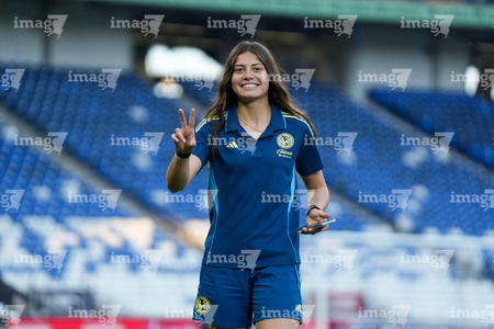 Guadalupe, Nuevo León, 6 de noviembre de 2025. Scarlett Camberos, durante el partido correspondiente a la ida de los Cuartos de Final del torneo Apertura 2025 de la Liga BBVA MX Femenil, entre las Rayadas del Monterrey y las Águilas del América, realizado en el estadio BBVA. Foto: Imago7/ Nora Guerrero
