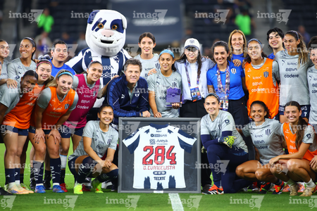 Guadalupe, Nuevo León, 6 de noviembre de 2025. Diana Evangelista recibió un reconocimiento, durante el partido correspondiente a la ida de los Cuartos de Final del torneo Apertura 2025 de la Liga BBVA MX Femenil, entre las Rayadas del Monterrey y las Águilas del América, realizado en el estadio BBVA. Foto: Imago7/David Arzamendi