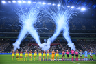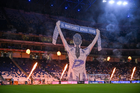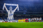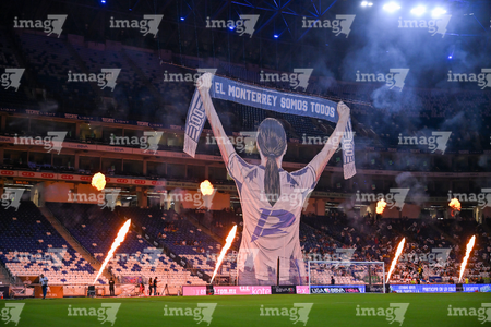 Guadalupe, Nuevo León, 6 de noviembre de 2025. Tifo y Protocolo, durante el partido correspondiente a la ida de los Cuartos de Final del torneo Apertura 2025 de la Liga BBVA MX Femenil, entre las Rayadas del Monterrey y las Águilas del América, realizado en el estadio BBVA. Foto: Imago7/ Nora Guerrero
