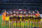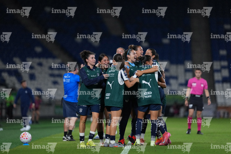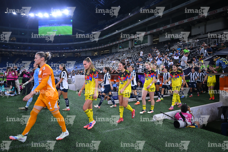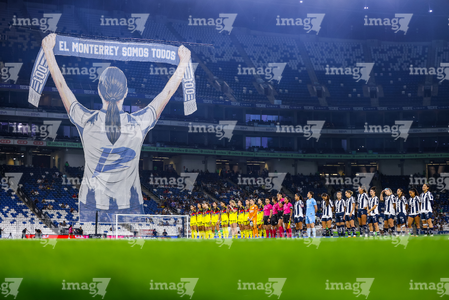 Guadalupe, Nuevo León, 6 de noviembre de 2025. Protocolo, durante el partido correspondiente a la ida de los Cuartos de Final del torneo Apertura 2025 de la Liga BBVA MX Femenil, entre las Rayadas del Monterrey y las Águilas del América, realizado en el estadio BBVA. Foto: Imago7/ Andrea Jiménez