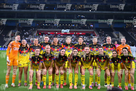 Guadalupe, Nuevo León, 6 de noviembre de 2025. Foto de equipo de América, durante el partido correspondiente a la ida de los Cuartos de Final del torneo Apertura 2025 de la Liga BBVA MX Femenil, entre las Rayadas del Monterrey y las Águilas del América, realizado en el estadio BBVA. Foto: Imago7/ Andrea Jiménez