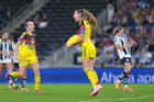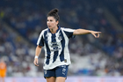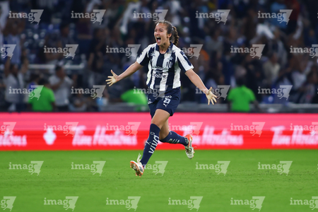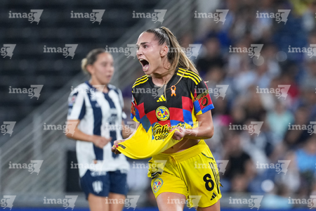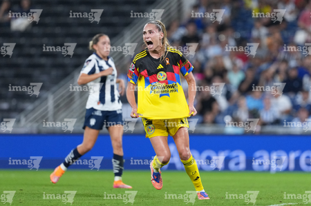 Guadalupe, Nuevo León, 6 de noviembre de 2025. Valeria Del Campo en festejo, durante el partido correspondiente a la ida de los Cuartos de Final del torneo Apertura 2025 de la Liga BBVA MX Femenil, entre las Rayadas del Monterrey y las Águilas del América, realizado en el estadio BBVA. Foto: Imago7/David Arzamendi