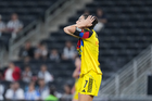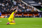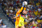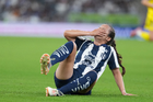 Guadalupe, Nuevo León, 6 de noviembre de 2025. Nancy Antonio en lamento, durante el partido correspondiente a la ida de los Cuartos de Final del torneo Apertura 2025 de la Liga BBVA MX Femenil, entre las Rayadas del Monterrey y las Águilas del América, realizado en el estadio BBVA. Foto: Imago7/ Nora Guerrero