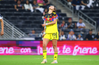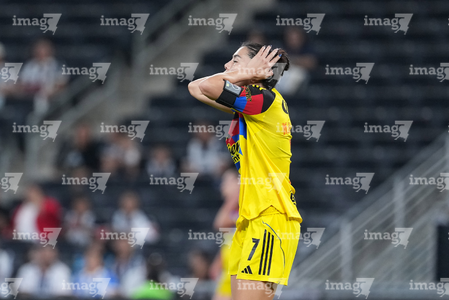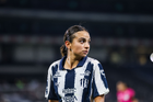Guadalupe, Nuevo León, 6 de noviembre de 2025. Kiana Palacios en lamento, durante el partido correspondiente a la ida de los Cuartos de Final del torneo Apertura 2025 de la Liga BBVA MX Femenil, entre las Rayadas del Monterrey y las Águilas del América, realizado en el estadio BBVA. Foto: Imago7/ Andrea Jiménez