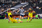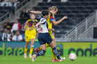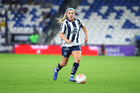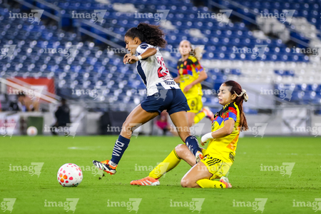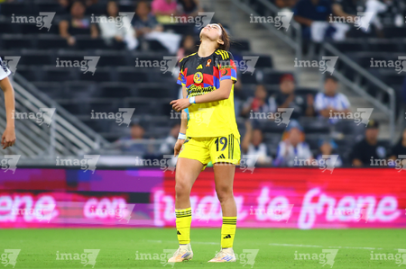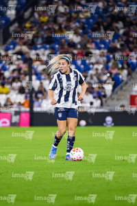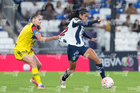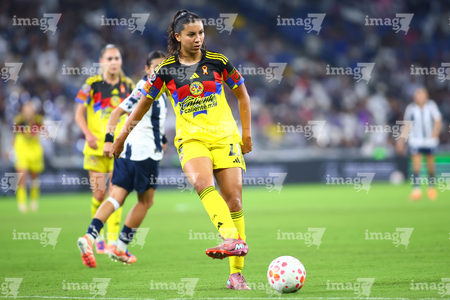 Guadalupe, Nuevo León, 6 de noviembre de 2025. Nicolette Hernández, durante el partido correspondiente a la ida de los Cuartos de Final del torneo Apertura 2025 de la Liga BBVA MX Femenil, entre las Rayadas del Monterrey y las Águilas del América, realizado en el estadio BBVA. Foto: Imago7/ Nora Guerrero
