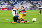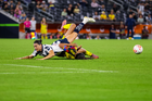 Guadalupe, Nuevo León, 6 de noviembre de 2025. Valeria Del Campo perdió un zapato, durante el partido correspondiente a la ida de los Cuartos de Final del torneo Apertura 2025 de la Liga BBVA MX Femenil, entre las Rayadas del Monterrey y las Águilas del América, realizado en el estadio BBVA. Foto: Imago7/ Nora Guerrero