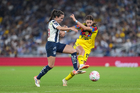 Guadalupe, Nuevo León, 6 de noviembre de 2025. Jana Gutiérrez y Lucía García, durante el partido correspondiente a la ida de los Cuartos de Final del torneo Apertura 2025 de la Liga BBVA MX Femenil, entre las Rayadas del Monterrey y las Águilas del América, realizado en el estadio BBVA. Foto: Imago7/ Andrea Jiménez