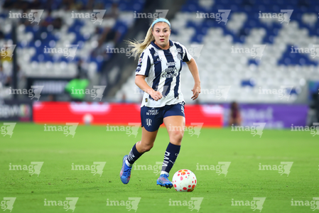 Guadalupe, Nuevo León, 6 de noviembre de 2025. Sarah Luebbert, durante el partido correspondiente a la ida de los Cuartos de Final del torneo Apertura 2025 de la Liga BBVA MX Femenil, entre las Rayadas del Monterrey y las Águilas del América, realizado en el estadio BBVA. Foto: Imago7/ Nora Guerrero