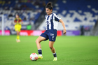 Guadalupe, Nuevo León, 6 de noviembre de 2025. Annia Mejía, durante el partido correspondiente a la ida de los Cuartos de Final del torneo Apertura 2025 de la Liga BBVA MX Femenil, entre las Rayadas del Monterrey y las Águilas del América, realizado en el estadio BBVA. Foto: Imago7/David Arzamendi