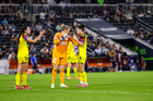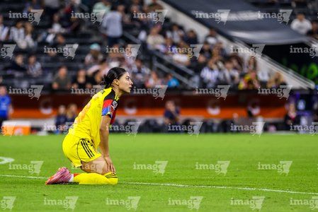 Guadalupe, Nuevo León, 6 de noviembre de 2025. Montserrat Saldivar en lamento, durante el partido correspondiente a la ida de los Cuartos de Final del torneo Apertura 2025 de la Liga BBVA MX Femenil, entre las Rayadas del Monterrey y las Águilas del América, realizado en el estadio BBVA. Foto: Imago7/David Arzamendi