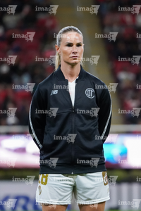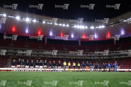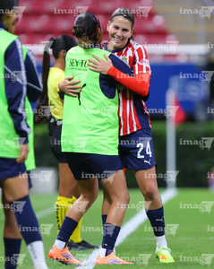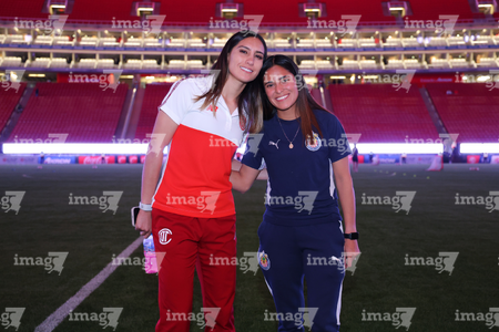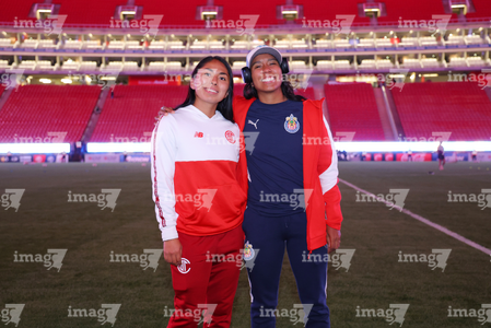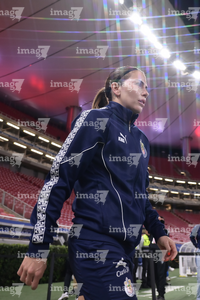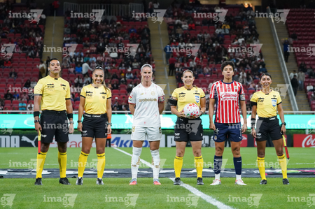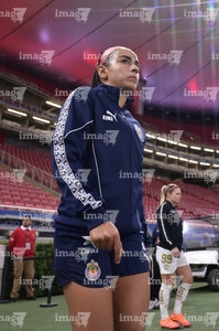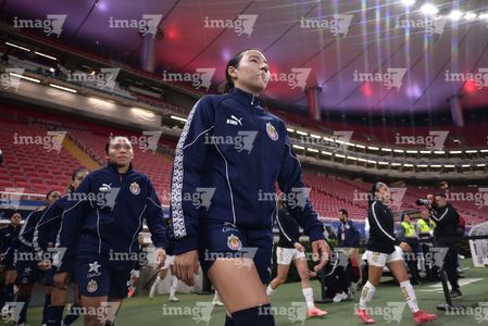 Zapopan, Jalisco, 6 de noviembre de 2025. Protocolo, durante el partido correspondiente a la ida de los Cuartos de Final del torneo Apertura 2025 de la Liga BBVA MX Femenil, entre las Chivas Rayadas del Guadalajara y las Diablas Rojas del Toluca, realizado en el estadio Akron. Foto: Imago7/