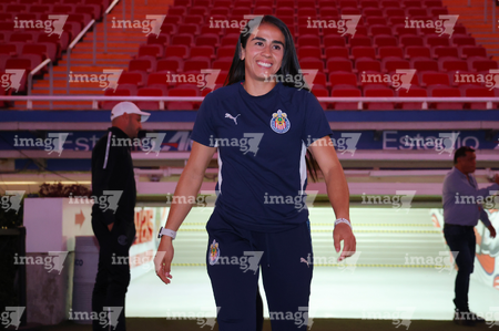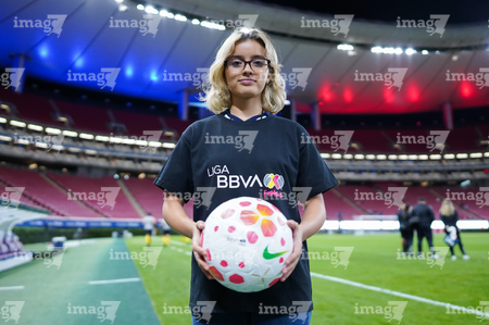 Zapopan, Jalisco, 6 de noviembre de 2025. Embajadora, durante el partido correspondiente a la ida de los Cuartos de Final del torneo Apertura 2025 de la Liga BBVA MX Femenil, entre las Chivas Rayadas del Guadalajara y las Diablas Rojas del Toluca, realizado en el estadio Akron. Foto: Imago7/ Hugo Ramirez