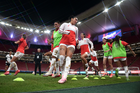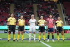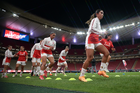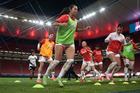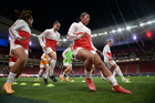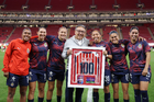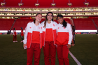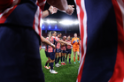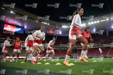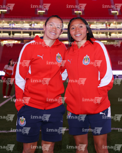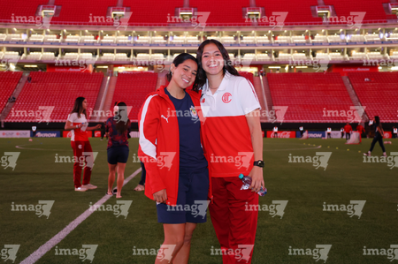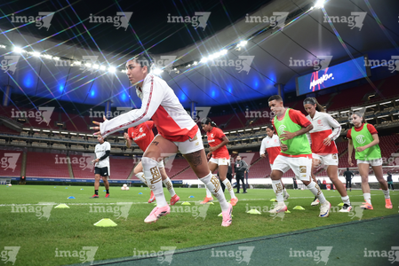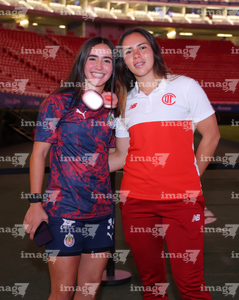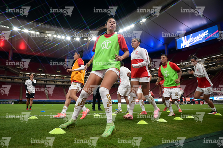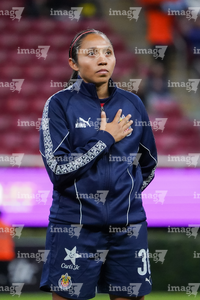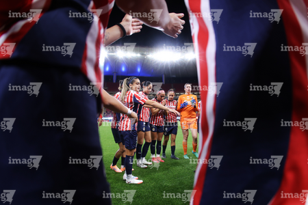 Zapopan, Jalisco, 6 de noviembre de 2025. Protocolo, durante el partido correspondiente a la ida de los Cuartos de Final del torneo Apertura 2025 de la Liga BBVA MX Femenil, entre las Chivas Rayadas del Guadalajara y las Diablas Rojas del Toluca, realizado en el estadio Akron. Foto: Imago7/ Juan Carlos Cubeyro.
