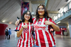 Zapopan, Jalisco, 6 de noviembre de 2025. Afición, durante el partido correspondiente a la ida de los Cuartos de Final del torneo Apertura 2025 de la Liga BBVA MX Femenil, entre las Chivas Rayadas del Guadalajara y las Diablas Rojas del Toluca, realizado en el estadio Akron. Foto: Imago7/ Hugo Ramírez