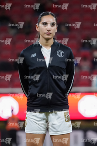 Zapopan, Jalisco, 6 de noviembre de 2025. Liliana Fernandez, durante el partido correspondiente a la ida de los Cuartos de Final del torneo Apertura 2025 de la Liga BBVA MX Femenil, entre las Chivas Rayadas del Guadalajara y las Diablas Rojas del Toluca, realizado en el estadio Akron. Foto: Imago7/Cristian Hernandez