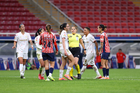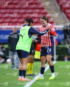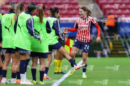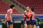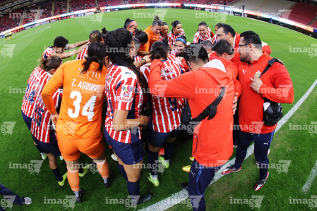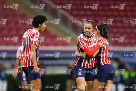 Zapopan, Jalisco, 6 de noviembre de 2025. Jugadoras de Chivas femenil, durante el partido correspondiente a la ida de los Cuartos de Final del torneo Apertura 2025 de la Liga BBVA MX Femenil, entre las Chivas Rayadas del Guadalajara y las Diablas Rojas del Toluca, realizado en el estadio Akron. Foto: Imago7/ Juan Carlos Cubeyro.
