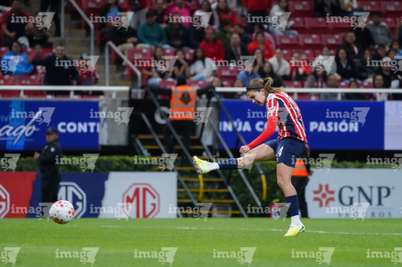 Zapopan, Jalisco, 6 de noviembre de 2025. Alicia Cervantes anota gol, durante el partido correspondiente a la ida de los Cuartos de Final del torneo Apertura 2025 de la Liga BBVA MX Femenil, entre las Chivas Rayadas del Guadalajara y las Diablas Rojas del Toluca, realizado en el estadio Akron. Foto: Imago7/
