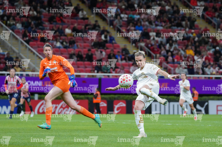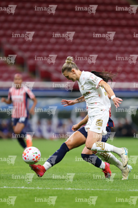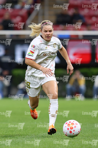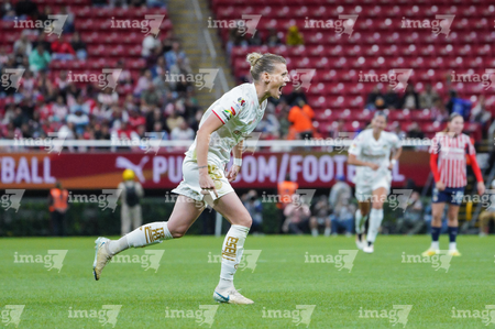 Zapopan, Jalisco, 6 de noviembre de 2025. Faustine Robert, durante el partido correspondiente a la ida de los Cuartos de Final del torneo Apertura 2025 de la Liga BBVA MX Femenil, entre las Chivas Rayadas del Guadalajara y las Diablas Rojas del Toluca, realizado en el estadio Akron. Foto: Imago7/ Juan Carlos Cubeyro.