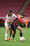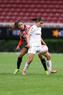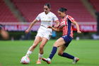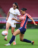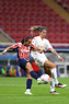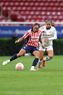 Zapopan, Jalisco, 6 de noviembre de 2025. Amandine Henry y Casandra Montero, durante el partido correspondiente a la ida de los Cuartos de Final del torneo Apertura 2025 de la Liga BBVA MX Femenil, entre las Chivas Rayadas del Guadalajara y las Diablas Rojas del Toluca, realizado en el estadio Akron. Foto: Imago7/ Juan Carlos Cubeyro.