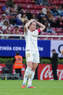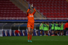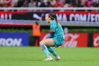 Zapopan, Jalisco, 6 de noviembre de 2025. Amandine Henry en lamento, durante el partido correspondiente a la ida de los Cuartos de Final del torneo Apertura 2025 de la Liga BBVA MX Femenil, entre las Chivas Rayadas del Guadalajara y las Diablas Rojas del Toluca, realizado en el estadio Akron. Foto: Imago7/ Hugo Ramirez