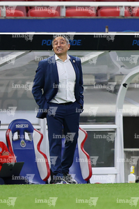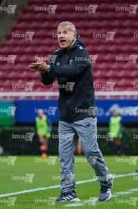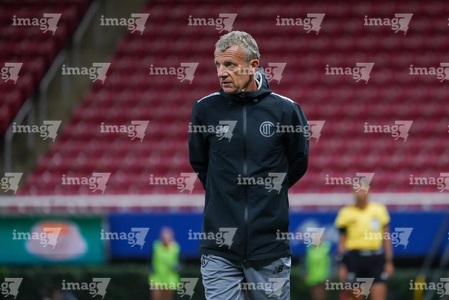 Zapopan, Jalisco, 6 de noviembre de 2025. Patrice Lair, director técnico, durante el partido correspondiente a la ida de los Cuartos de Final del torneo Apertura 2025 de la Liga BBVA MX Femenil, entre las Chivas Rayadas del Guadalajara y las Diablas Rojas del Toluca, realizado en el estadio Akron. Foto: Imago7/ Juan Carlos Cubeyro.