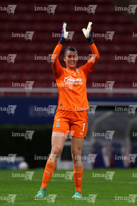 Zapopan, Jalisco, 6 de noviembre de 2025. Celeste Espinoj, durante el partido correspondiente a la ida de los Cuartos de Final del torneo Apertura 2025 de la Liga BBVA MX Femenil, entre las Chivas Rayadas del Guadalajara y las Diablas Rojas del Toluca, realizado en el estadio Akron. Foto: Imago7/