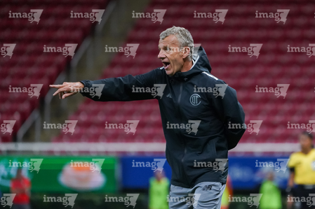 Zapopan, Jalisco, 6 de noviembre de 2025. Antonio Contreras, director técnico, durante el partido correspondiente a la ida de los Cuartos de Final del torneo Apertura 2025 de la Liga BBVA MX Femenil, entre las Chivas Rayadas del Guadalajara y las Diablas Rojas del Toluca, realizado en el estadio Akron. Foto: Imago7/ Juan Carlos Cubeyro.