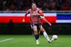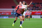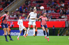 Zapopan, Jalisco, 6 de noviembre de 2025. Celeste Espino, durante el partido correspondiente a la ida de los Cuartos de Final del torneo Apertura 2025 de la Liga BBVA MX Femenil, entre las Chivas Rayadas del Guadalajara y las Diablas Rojas del Toluca, realizado en el estadio Akron. Foto: Imago7/ Juan Carlos Cubeyro.