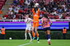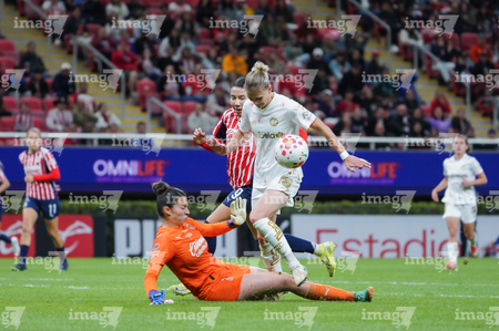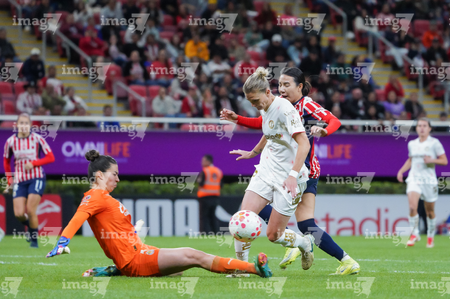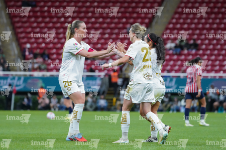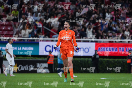Zapopan, Jalisco, 6 de noviembre de 2025. Portigoles, durante el partido correspondiente a la ida de los Cuartos de Final del torneo Apertura 2025 de la Liga BBVA MX Femenil, entre las Chivas Rayadas del Guadalajara y las Diablas Rojas del Toluca, realizado en el estadio Akron. Foto: Imago7/ Juan Carlos Cubeyro.
