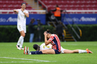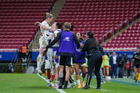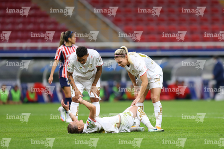 Zapopan, Jalisco, 6 de noviembre de 2025. Faustine Robert resultó lesionada, durante el partido correspondiente a la ida de los Cuartos de Final del torneo Apertura 2025 de la Liga BBVA MX Femenil, entre las Chivas Rayadas del Guadalajara y las Diablas Rojas del Toluca, realizado en el estadio Akron. Foto: Imago7/Cristian Hernandez