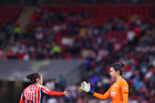 Zapopan, Jalisco, 6 de noviembre de 2025. Casandra Cuevas y Daniela Delgado, durante el partido correspondiente a la ida de los Cuartos de Final del torneo Apertura 2025 de la Liga BBVA MX Femenil, entre las Chivas Rayadas del Guadalajara y las Diablas Rojas del Toluca, realizado en el estadio Akron. Foto: Imago7/