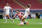 Zapopan, Jalisco, 6 de noviembre de 2025. Eugenie Le Sommer, durante el partido correspondiente a la ida de los Cuartos de Final del torneo Apertura 2025 de la Liga BBVA MX Femenil, entre las Chivas Rayadas del Guadalajara y las Diablas Rojas del Toluca, realizado en el estadio Akron. Foto: Imago7/
